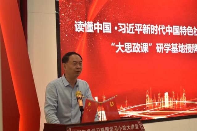 本次活动共分为两个议程。授牌仪式上,中共武昌区委常委、宣传部部长甘世斌分享了2022年武昌区“宣传贯彻党的二十大”工作取得的丰硕成果。他表示,希望校地双方用“活的方式、实的内容、新的语言”加强创新理论,深化科研课题合作,拓展合作维度,推动解决思想问题与解决实际问题相结合,实现双方合作共赢。