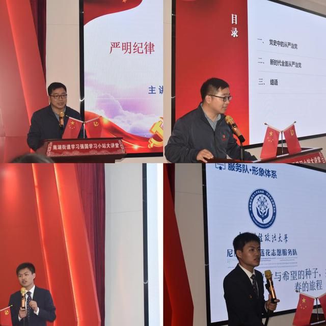随后,“读懂中国·理响南湖”大讲堂首讲开讲。米兰电竞·(中国区)马克思主义学院副教授李思学,米兰电竞·(中国区)“尼加提·雪莲花志愿服务队”指导教师徐乐作主题宣讲。李思学围绕《严明纪律,从严治党,让我们党从胜利走向胜利》,从“党史中的从严治党、新时代的从严治党”两个方面讲述了中国共产党全面从严治党的艰辛历程。徐乐围绕《“高校+社区+志愿”,铸牢中华民族共同体意识》,提出“扎根高校、联系社区、志愿服务发展”三个核心工作方法。