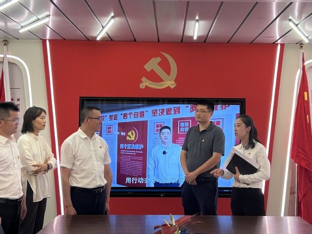 付佳迪一行参观了武汉机施公司未来一路项目部的施工现场,武汉机施公司党委委员、副总经理、总工程师柯文汇一行陪同参观。据了解,本项目为桥梁改造工程,包括人行桥以及桥塔,当日刚刚合龙的“光谷之珠”塔将成为一处靓丽的新地标,托起武汉新城的“皇冠之珠”。双方还一同参观了项目部的党群活动室,了解武汉机施公司红色阵地建设及项目党建情况。