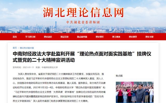 2022年,学校“理论热点面对面”实践基地开展的各项活动被湖北省委讲师团主办的“湖北理论信息网”以及监利市相关网站等校内外媒体平台公开报道20余次。