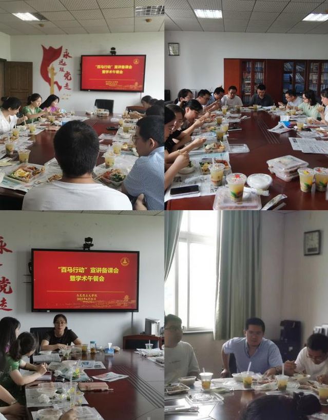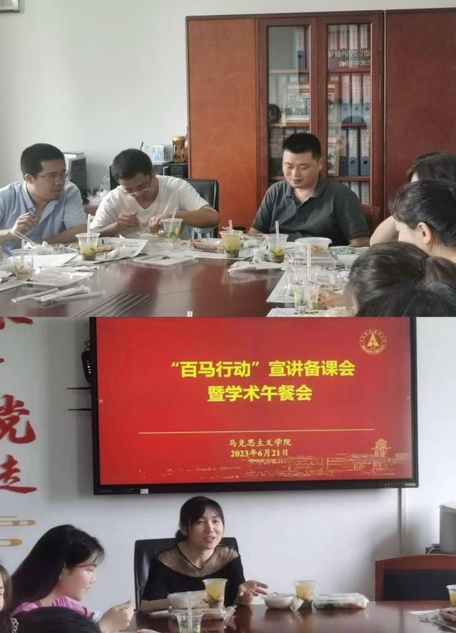 (通讯员 王林华)6月21日,马克思主义学院在文沛楼413会议室组织召开“百马行动”宣讲备课会暨学术午餐会。会议由马克思主义学院副院长付佳迪主持,副院长荣枢,倪瑞华教授以及学院青年教师代表等23人出席宣讲备课会。