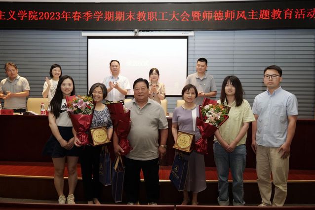 会议把荣退仪式作为师德集中学习的重要载体,发挥优秀教师的示范引领作用。周巍院长为王利平、姚桂荣、宋州等今年上半年退休的三位教师现场颁发荣退证书,并对三位老师表示敬意和感谢,感谢他们三十余载爱岗敬业、教书育人,为学院和学校的发展奉献自己的青春,希望学院教职工能够传承好老教师无私奉献、率先垂范的精神风范,再创马院佳绩。三位荣退老师也一一发表了感言,表达了对马院未来发展的美好期待和祝福,并表示将一如既往关注和支持学院的发展。宁文苑老师代表新进老师表示,学习优秀老教师的精神品质,接续砥砺奋进。