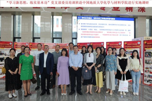 为深入开展学习贯彻习近平新时代中国特色社会主义思想主题教育,大兴调查研究之风,推动主题教育走深走实,按照哲学院、马克思主义学院党委(分党校)“学习新思想,练实基本功”2023年党支部委员培训班安排,5月25日下午,哲学院党委书记刘琳琳带领马克思主义学院和哲学院师生党支部书记赴中国地质大学(武汉)材料与化学学院(以下简称材化学院)开展实地调研,学习交流党建工作思路与举措,材化学院党委书记梁本哲作了经验介绍。