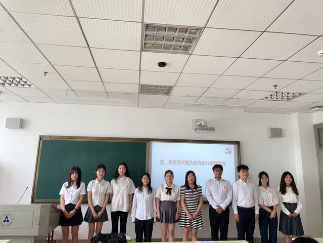 其后,组织委员李金亭代表支部委员会报告对相关发展对象的审查情况,全体正式党员对10名发展对象能否入党逐一充分讨论并进行无记名投票表决。根据表决情况,大会一致同意接收金慧婷、靳颜羽、陈郡瑶、杨梦玲、杨纾奇、邹娟、李兴华、海廷贵、史红才、张敏10名同志为中共预备党员。在入党宣誓环节,研究生第二党支部的全体党员同新接收的预备党员一起,面向党旗,举起右拳,庄严宣誓,表达为共产主义事业奋斗终身的决心。