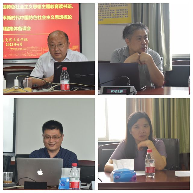 (通讯员 申珍妮)为深入开展学习贯彻习近平新时代中国特色社会主义思想主题教育,全面落实党的二十大精神,推动学习贯彻习近平新时代中国特色社会主义思想“三进”工作走深走实,6月5日,马克思主义学院举行学习贯彻习近平新时代中国特色社会主义思想主题教育读书班、理论学习中心组学习暨习近平新时代中国特色社会主义思想概论课程集体备课会。会议由马克思主义学院党委书记邓杨主持,马克思主义学院党委理论学习中心组成员、习近平新时代中国特色社会主义思想概论教研室和中共党史党建教研室全体教师参加。