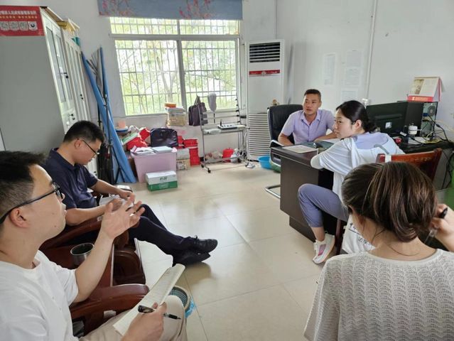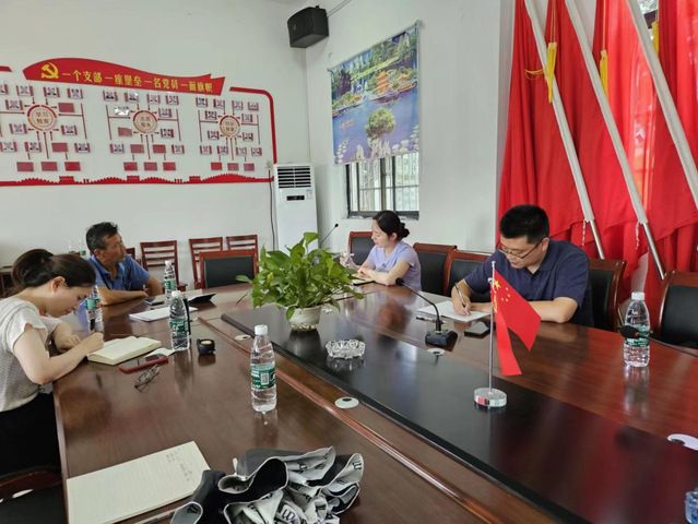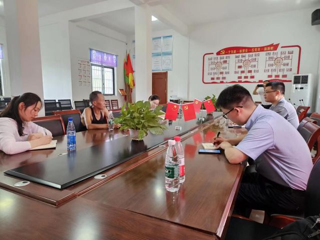 ▲6月29日下午,调研团队在星燎村党员群众服务中心对党支部副书记谢华平进行访谈