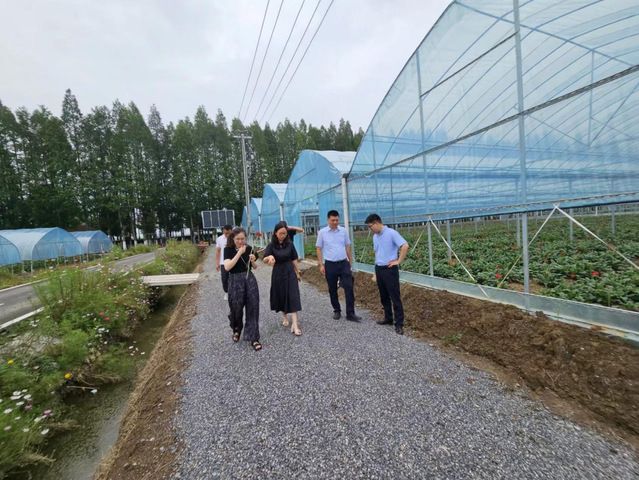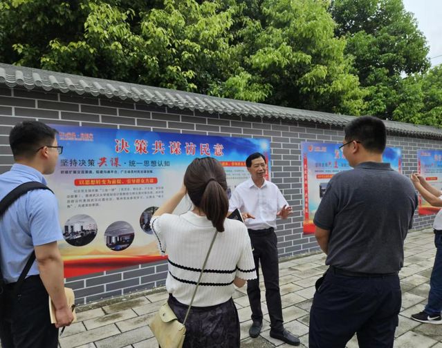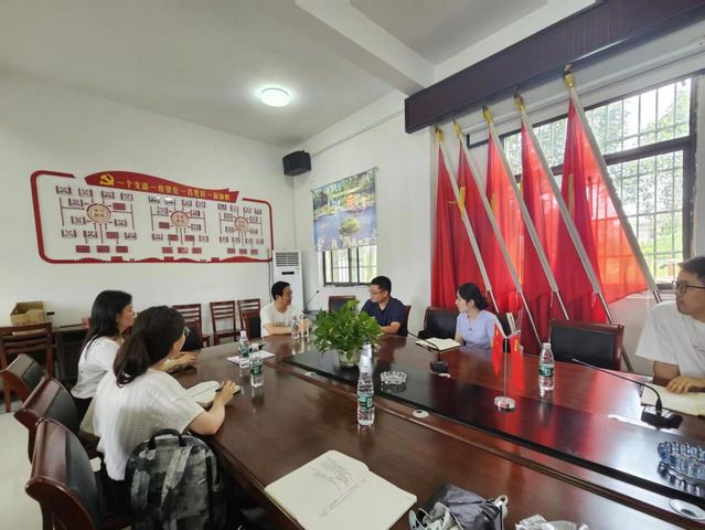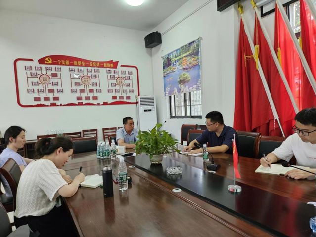 ▲7月1日上午,调研团队一行来到福田寺镇福田村进行实地参观考察,福田寺镇党委副书记王露、福田村党支部书记杨词贤、市委组织部副部长余维康陪同参与