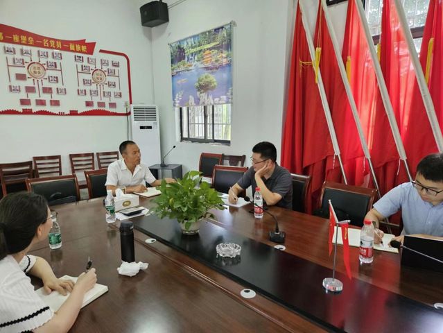 ▲7月1日上午,调研团队在尺八镇尚禾农业专业合作社联合社对尚禾农业专业合作社理事长、党支部书记欧阳斌进行访谈,尺八镇纪委书记周龙、市委组织部副部长余维康陪同参与