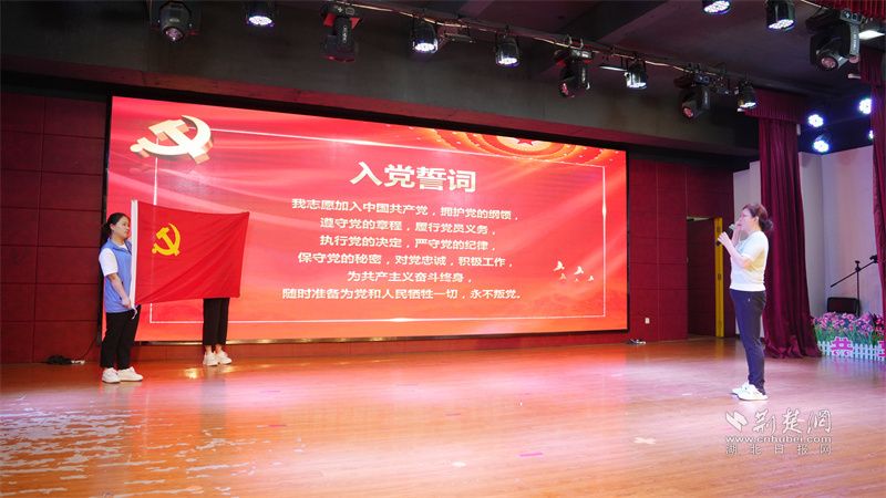 南湖街道党工委书记郑丽霞带领参会人员重温入党誓词。 通讯员供图