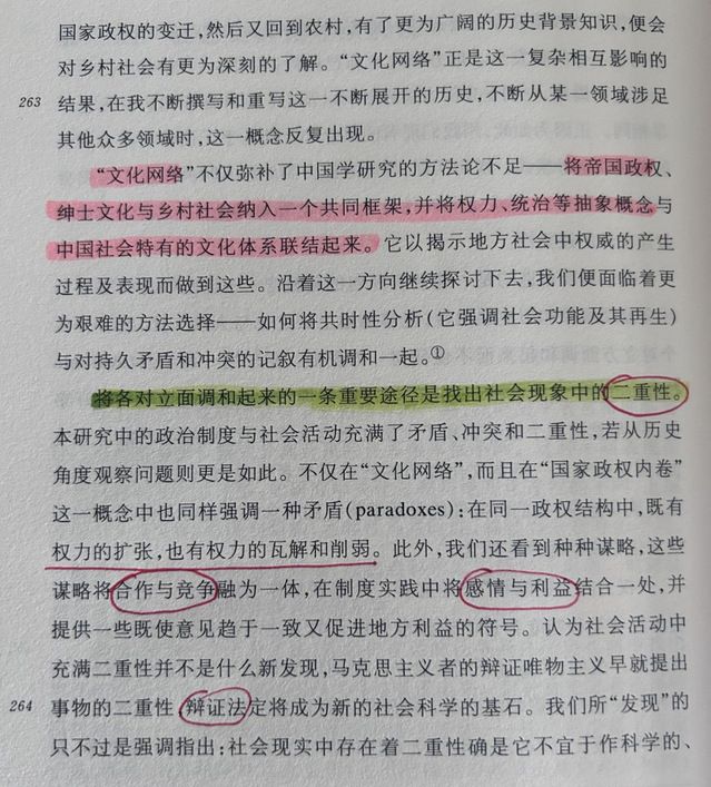 《文化、权力与国家》的成就之一便在于提出了有别于施坚雅的农村市场体系研究、弗里德曼的乡村宗族研究、黄宗智的农村经济研究范式的研究模型——“权力的文化网络”。这一研究模式将“帝国政权、绅士文化与乡村社会纳入了一个共同框架,并将权力、统治等抽象概念与中国社会特有的文化体系联结起来”,为我们提供了一种自下而上的理解国家与地方社会关系的视角。