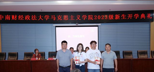 开学典礼上,副院长刘强、付佳迪向新生代表赠予新书,勉励同学们读好原著、悟透原理。