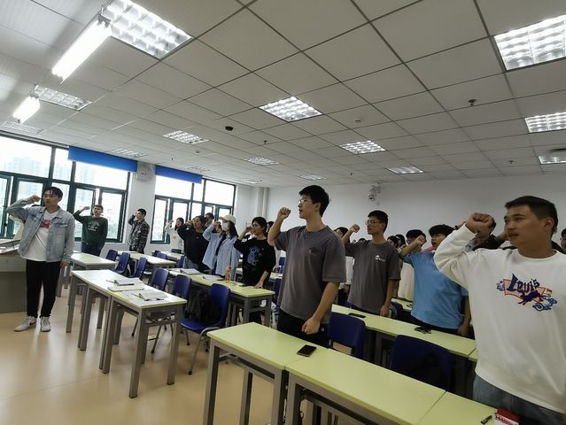 活动第一项:重温入党誓词。由组织委员张卓带领全体党员重温入党誓词,并现场缴纳9月份的党费。