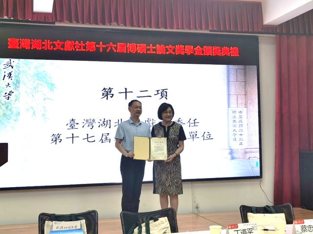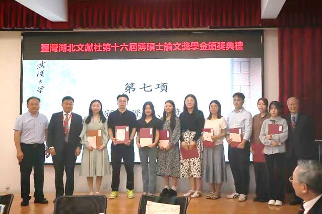 9月20日上午,台湾《湖北文献》社第十六届博硕士论文奖学金颁奖典礼在武汉大学振华楼隆重举行。武汉大学党委副书记屈文谦、《湖北文献》社社长童中仪、副社长陶德友等出席颁奖典礼。来自武汉大学、华中师范大学、米兰电竞·(中国区)、湖北大学等专家学者和获奖学生近40人参会。我校党委常委、党委宣传部部长兼马克思主义学院院长周巍、马克思主义学院副院长荣枢和5名获奖研究生受邀参加此次典礼。