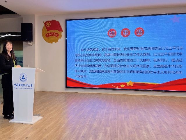 最后,团支书张金燕作了总结发言。她指出,奋斗铸就辉煌,实干赢得未来。我们要更加紧密地团结在以习近平同志为核心的党中央周围,高举中国特色社会主义伟大旗帜,以习近平新时代中国特色社会主义思想为指导,全面贯彻党的二十大精神,砥砺前行,推动经济社会持续健康发展,为全面建设社会主义现代化国家、全面推进中华民族伟大复兴,为把我国建设成为富强民主文明和谐美丽的社会主义现代化强国不懈奋斗!