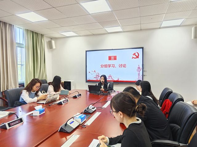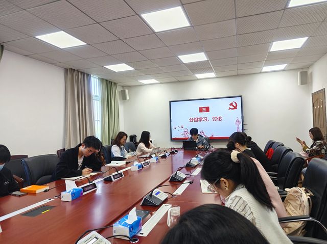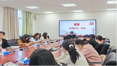 活动第三项:全体党员分为三个党小组对本次的主题党日的学习资料进行学习研讨,付涵、徐鹏杰和刘如意同志作为小组代表进行交流分享。