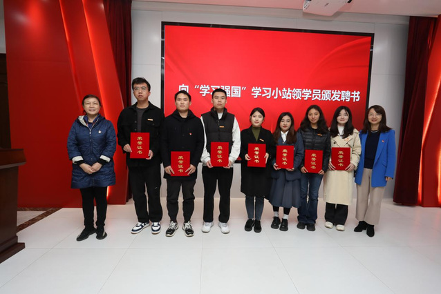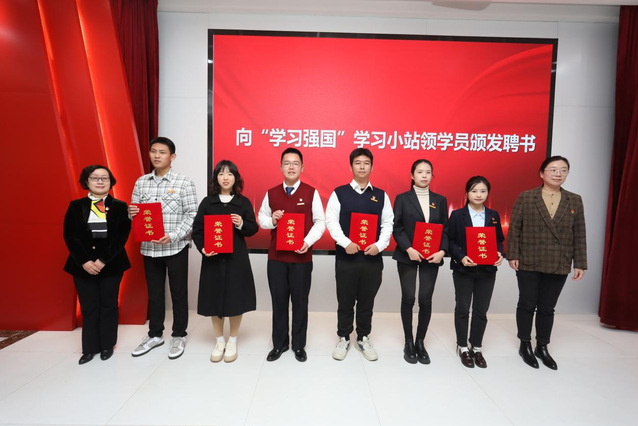 在启动仪式上,南湖街道党工委书记郑丽霞代表街道致辞,充分肯定了校地双方共建联建以来的各项工作成效。武昌区委宣传部副部长柏雨辰、武汉革命博物馆副馆长张帆、校党委宣传部副部长覃虹、湖北省新华书店(集团)有限公司武汉市分公司副经理涂利群等共同向校地招募的“学习强国”学习小站领学员颁发聘书。据悉,经过前期选拔,我校共有13位硕士研究生招募成为“学习强国”学习小站首批领学员。他们将在社区以后的党建工作中,每人对接一个“学习小站”,领着居民一起学习党的理论。