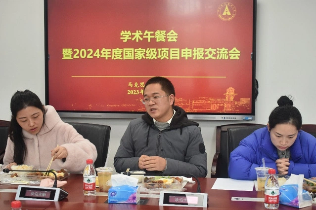 (通讯员 何丽华)12月29日中午,马克思主义学院于文沛楼402会议室组织召开学术午餐会暨2024年度国家级项目申报交流会。会议由马克思主义学院副院长付佳迪主持,学院副院长荣枢、国家社科基金项目申报获得者陈兴耀老师、刘雨萌老师及学院青年教师代表出席座谈会。