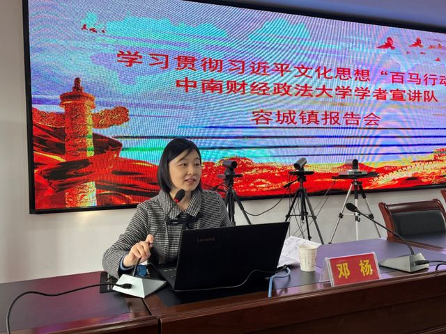 在容城镇,马克思主义学院党委书记邓杨从科学定位、构成要素、核心内容和鲜明特征等方面解读了习近平文化思想的科学体系和理论内涵,并对习近平文化思想对增强中华民族凝聚力的重大意义、铸牢中华民族共同体意识是习近平文化思想的重要组成部分、以习近平文化思想为指导铸牢中华民族共同体意识等进行了深入阐述。