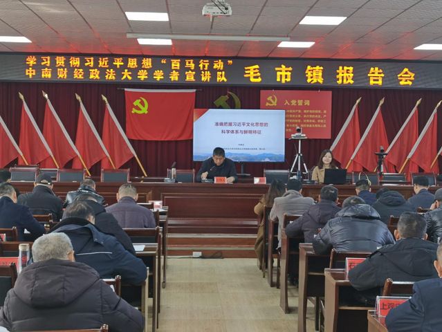 在周老嘴镇、红城乡,马克思主义学院教授黄家猛作了题为《准确把握习近平文化思想的科学体系》的专题报告。报告从习近平文化思想提出的背景、习近平文化思想的科学体系和如何学习贯彻习近平文化思想三个方面,结合监利实际进行了宣讲。