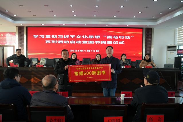 校党委常委、党委宣传部部长兼马克思主义学院院长周巍代表学校向周老嘴镇直荀中学捐赠500册图书