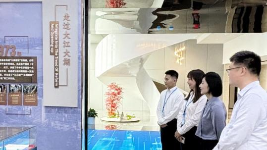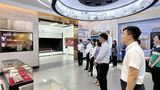 会前,邓杨一行参观了中建三局三公司企业文化创客中心,中建三局三公司人力资源部(干部人事部)副部长严青一行陪同参观。师生共同观看企业文化主题片,了解企业奋斗历程、卓越成就、文化底蕴以及代表性成果等。