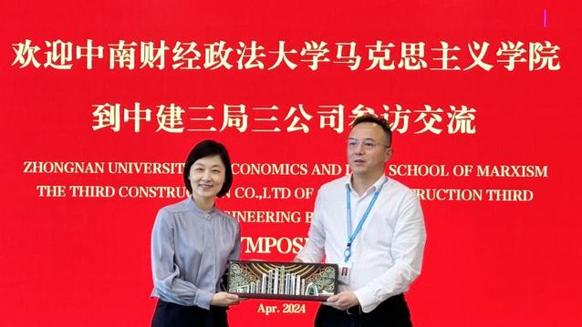副院长付佳迪指出,中建三局作为建筑行业的支柱,展现出了央企的担当精神,同时对校企之间建立长效交流合作渠道、打破信息壁垒以及认知隔膜表示了殷切期待。邓杨书记充分肯定了校企双方初步达成的发展规划表示充分肯定,对于中建三局三公司各位领导提出的务实建议表达感谢,同时她指出,学院应该增进对于企业了解的主动性,进一步帮助学生做好就业指导和规划目标。最后,马院两位领导对于中建三局代表莅临我校指导工作表示了期待和欢迎。