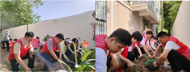 马克思主义学院付佳迪副院长、邹胜男老师以及研究生第一党支部同志在社区负责人的引领下,赴新大地分会场与社区工作人员进行共建车棚花园志愿服务活动。