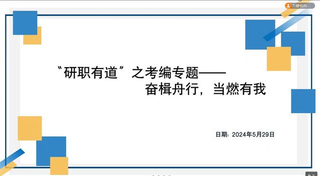 (通讯员 侯千慧 雷思若)为帮助在校研究生培养就业意识,提前做好职业规划,更好地适应当前就业形势,5月29日晚,马克思主义学院于线上开展“研职有道” 之考编专题——奋楫舟行,当燃有我,本次活动特邀2021级毕业生夏思洁、牟颖、张金燕分享求职经验,2022级、2023级全体研究生参与会议。本次会议由万静怡主持。