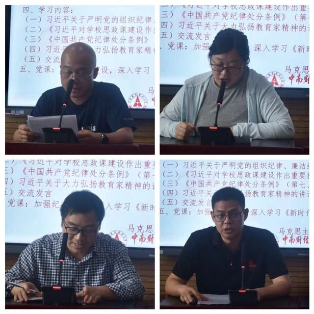 随后,刘海波老师、董文俊老师、李思学老师、甘小武老师带领与会党员重点学习了《习近平关于严明党的组织纪律、廉洁纪律的重要论述》、《习近平对学校思政课作出重要指示》、《中国共产党纪律处分条例》(第七、八章)、《习近平关于弘扬教育家精神的讲话》四个文件。