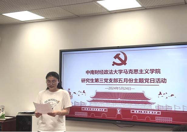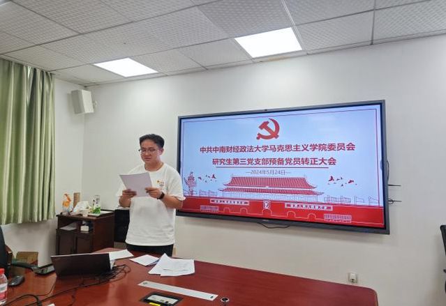 (通讯员 韩晓婷 盛辰文 摄影 李佳乐)5月24日下午,马克思主义学院研究生第三党支部在文沛楼402会议室召开“严明组织纪律和廉洁纪律 争做忠诚干净担当的表率”5月份主题党日活动、预备党员转正大会以及讨论确定发展对象支部党员大会,本次会议由支部书记盛辰文同志和宣传委员韩晓婷同志主持。辅导员李祥栋老师、马克思主义学院研究生第三党支部全体在校党员和入党积极分子参加。