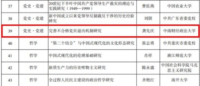 近日,全国哲学社会科学工作办公室公布《2024年国家社会科学基金重点项目立项名单》和《2024年国家社会科学基金一般项目立项名单》,我院龚先庆教授申报的课题《完善不合格党员退出机制研究》获2024年度国家社科基金重点项目立项,李思学副教授申报的课题《习近平总书记关于党的自我革命重要思想的思维方法研究》获2024年国家社会科学基金一般项目立项。金额、数位列“党史·党建”学科全省第一!