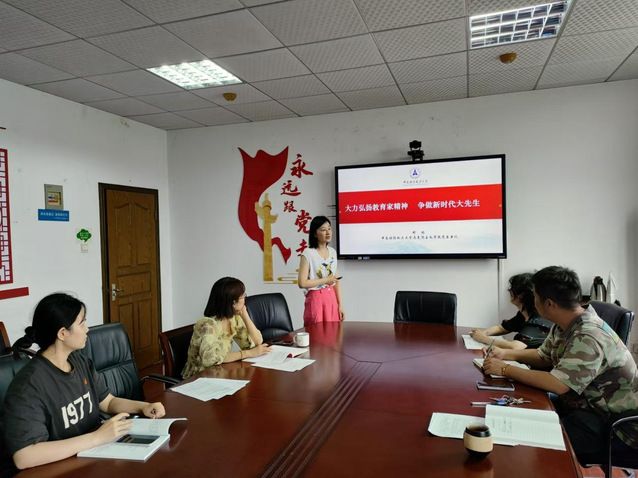 联学结束后,各党支部分别开展支部活动。在行政党支部,邓杨同志向支部党员讲授了弘扬教育家精神师德师风专题党课。