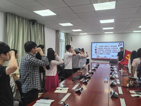 会议伊始,由韩晓婷同志带领全体党员重温入党誓词,全体党员现场缴纳9月份党费。