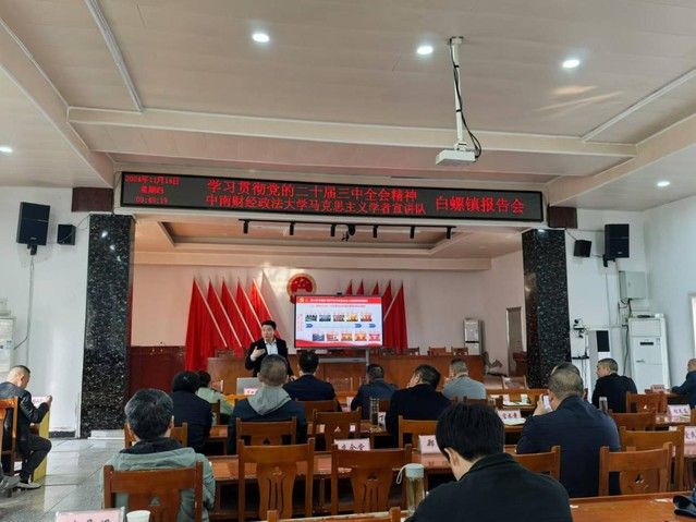在白螺镇和上车湾镇,马克思主义学院教授李世黎围绕深刻认识党的二十届三中全会重大意义,全面把握进一步全面深化改革的指导思想、总目标和重大原则,全面把握全会推出的重大改革举措三个部分,对党的二十届三中全会精神进行了深入阐释。“农村天地广阔、农业大有可为”,他鼓舞基层党员干部全面领会全会精神,坚定为实现中国式现代化而奋斗的信心与决心,善作善成、久久为功。