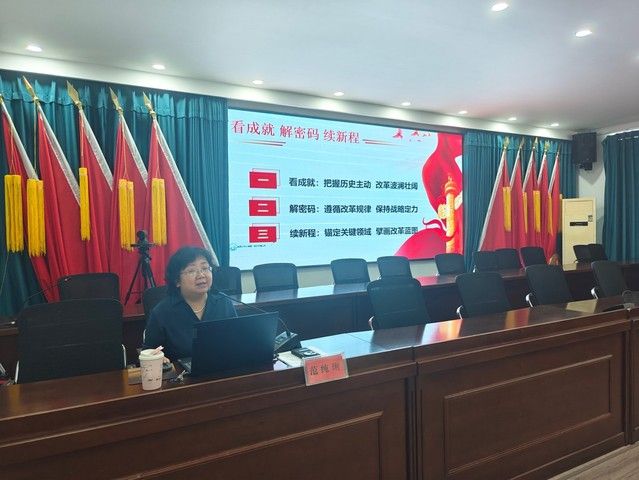 在汪桥镇和毛市镇,会计学院教授范纯琍以《看成就 解密码 续新程》为题进行了宣讲。她从改革开放以来特别是十八届三中全会以来全面深化改革取得的历史性成就、进一步全面深化改革的重要性和必要性、进一步全面深化改革必须遵循的重大原则、进一步全面深化改革的聚焦点和关键领域、进一步全面深化改革的重要举措和战略安排等方面,对党的二十届三中全会精神进行了全面阐释。