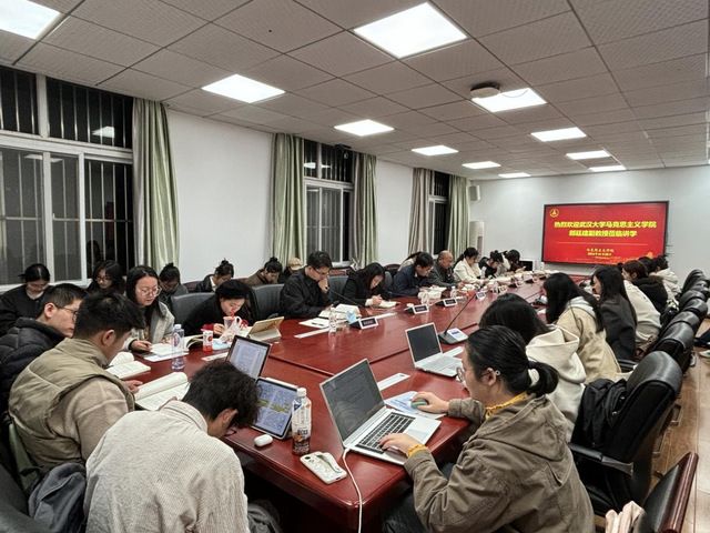(通讯员 胡南 摄影 卫彩煜)为深入学习贯彻习近平新时代中国特色社会主义思想,贯彻落实党的二十届三中全会精神,推动理论学习教育长效化发展,努力营造书香马院的浓厚氛围,11月28日晚,马克思主义学院在文沛楼402会议室举办“读懂中国·红色马院”系列讲坛暨2024年第三期“读懂马克思”系列读书交流会。本次读书会以《共产党宣言》为文本,特邀武汉大学马克思主义学院郎廷建副教授主讲,活动由学院龚先庆教授主持,我院教师王益、胡世文、武汉大学研究生及2024级硕士研究生共同参加学习。
