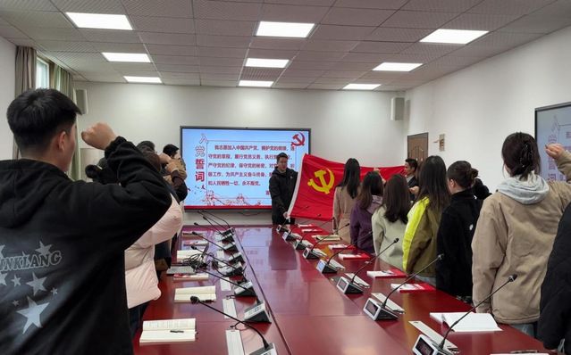 活动第一项:重温入党誓词。由支部组织委员付雄同志领誓,研究生第三党支部与会党员集体重温入党誓词。