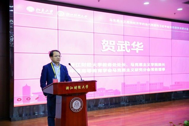 上午8:30,开幕式在浙江财经大学学术中心第二报告厅举行。浙江财经大学教务处处长、马克思主义学院院长、中国高等教育学会马克思主义研究分会常务理事贺武华教授主持开幕式,浙江财经大学副校长董进才,中国高等教育学会马克思主义研究分会理事长、北京大学校务委员会副主任兼秘书长、北京大学工会主席安钰峰,北京大学马克思主义学院教授、中国高等教育学会马克思主义研究分会顾问、首都经济学家论坛主席孙蚌珠先后致辞。