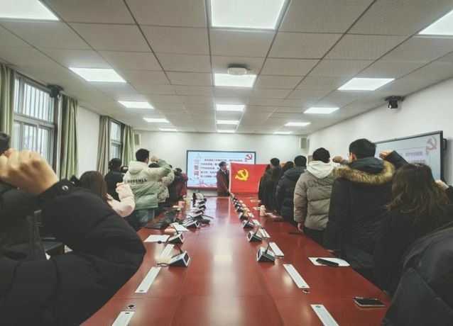会议第一项:重温入党誓词。由支部组织委员付雄同志领誓,研究生第三党支部与会党员集体重温入党誓词。全体党员现场缴纳12月份党费。