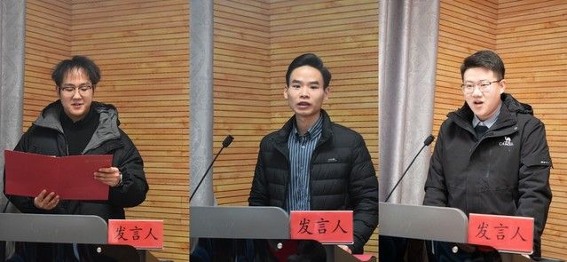 获奖学生代表发言环节,盛辰文作为研究生第三党支部书记,分享了带领支部成员斩获2024年党支部风采大赛第一名的心得体会,强调面对困难和挑战时,支部作为战斗堡垒团结一心、共同努力的重要性;李斌作为优秀研究生标兵,介绍了他在学术科研、学生工作和理论宣讲等经历,强调要勇于探索未知领域,不断挑战自我,保持好奇心和持续学习的态度;付涵则结合自身学术实践经历进行经验分享,强调要依托学院提供的丰富实践机会和优质科研平台,积极参与学术赛事,不断提升专业素养。