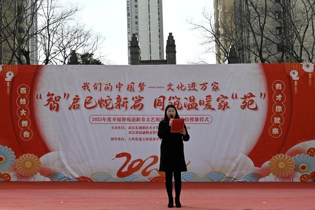 (通讯员 张羽彤 王子秦 摄影 刘云龙)为进一步深化校社联动合作,深入了解社区党建引领多元治理格局与“共同缔造”的创新实践,推进我院研究生党建实践新发展,1月10日下午,武汉东湖高新区左岭街道智苑社区举办了主题为“智”启巳蛇新篇,同筑温暖家“苑”的2025年度幸福智苑迎新春文艺展演活动暨共建单位授旗仪式。武汉东湖高新区左岭街道党工委副书记、办事处主任卢翔,武汉东湖高新区左岭街道党工委委员、办事处副主任王进军,武汉东湖高新区左岭街道党工委委员、办事处副主任潘峰,武汉东湖高新区左岭街道人大政协副主任周昀以及各共建单位代表等出席仪式。我院研究生第二党支部、“读懂中国”研究生理论宣讲团代表受邀参加仪式并接受社区授旗。