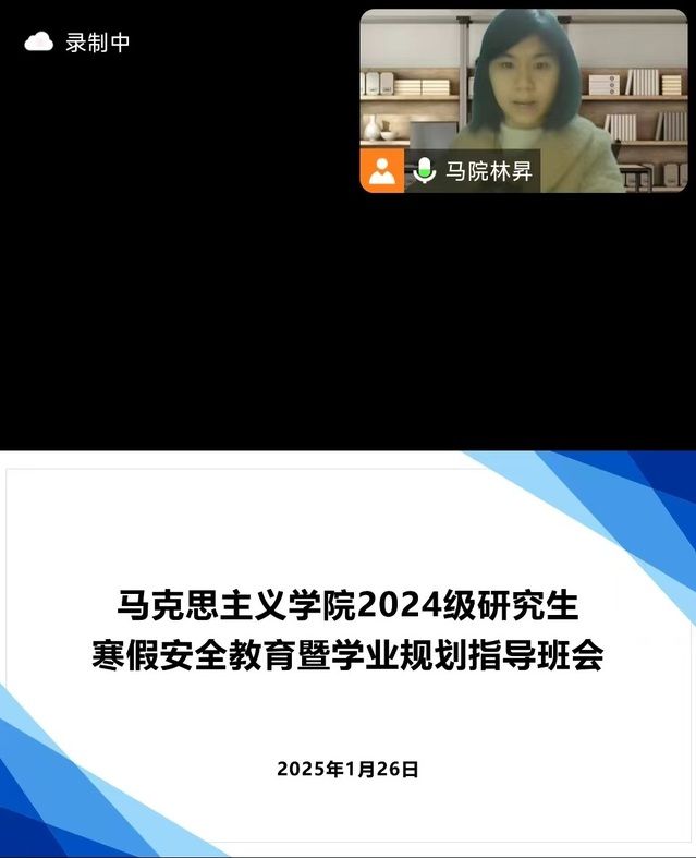 (通讯员赵伟)为增强学生安全防范意识,构建平安校园长效机制,引导学生合理安排假期时间,1月26日晚,马克思主义学院2024级硕士研究生召开寒假安全教育暨学业规划指导班会。会议由辅导员林昇主持,2024级全体研究生参加。