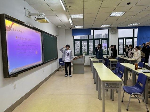 活动伊始,全体团员庄严肃立,共同重温入团誓词。在团支书赵伟的带领下,团员们高举右拳,庄严宣誓。誓词犹如战鼓,敲响在每一位团员的心中,让大家再次回想起入团时的热血与决心,时刻提醒自己肩负的责任与使命。
