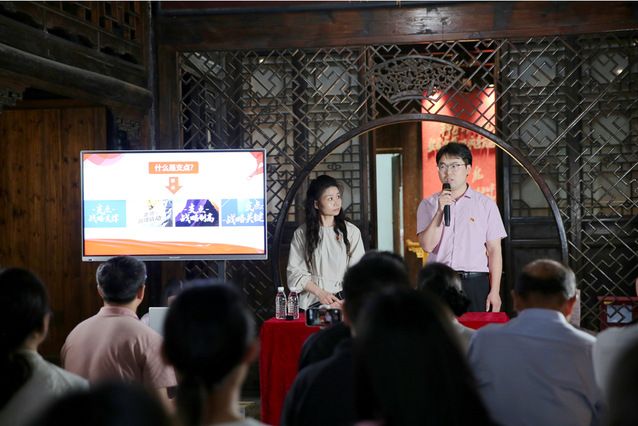 转场周老嘴镇老街游客接待中心,石敬琳老师聚焦《实施文化创新战略 整体提升支点的文化影响力》主题,详细讲解了地方文旅产业创新发展的重要性和可行性,以及地方文化在整体提升支点建设文化影响力的相关政策和具体策略,提供了文化创新的具体思路。