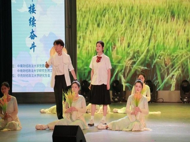 在舞台的聚光灯下,学院研究生化身时代的讲述者。他们用细腻的舞蹈动作,演绎袁隆平院士青年时期立下“禾下乘凉梦”的坚定决心;以饱含深情的台词,传递出科研过程中面对重重困难却永不言弃的坚韧。同学们的精彩演绎,让现场观众仿若置身于袁老奋斗的岁月,深刻感受到那一份对土地的热爱与对苍生的担当。