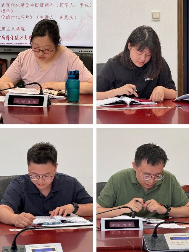 接着,张莉老师、李成老师、刘拯华老师带领与会党员重点学习了《坚持自立自强突出应用导向推动人工智能健康有序发展》《激励新时代青年在中国式现代化建设中挺膺担当》《八项规定改变中国》等三个文件。