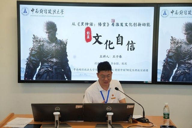 在下午的分论坛上,各校宣讲团代表围绕不同的议题展开分组宣讲交流。我院“读懂中国”研究生理论宣讲团王子秦作了题为《从<黑神话:悟空>看激发文化创新动能彰显文化自信》的主题宣讲,他从习近平总书记在中共中央政治局第十七次集体学习时的讲话引出文化自信在新时代、新技术下的创新表达的重要性,以《黑神话:悟空》这款爆火的游戏为案例,介绍了其通过实景扫描取景、陕北说书融入等方式对中华优秀传统文化在数字时代的传承与创新的做法,阐述了文化自信得以激发文化创新动能的形式更好彰显的重要意义。最后号召大家要深刻认识到肩负的文化使命和历史责任,坚定文化自信,勇于创新实践,不断推动中华优秀传统文化创造性转化和创新性发展。