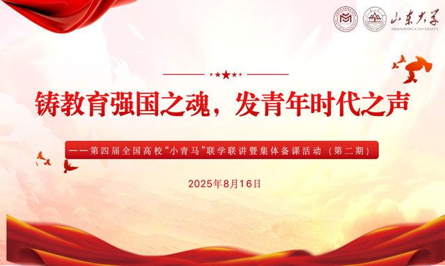 (通讯员 张羽彤 王子秦)为深入贯彻《教育强国建设规划纲要(2024-2035年)》精神,持续深化党的二十大和二十届三中全会精神学习宣传成效,2025年8月14日至18日,由山东大学马克思主义学院主办,山东大学习近平新时代中国特色社会主义思想青年学习会、山东大学“青马弘道”理论宣讲团共同承办的第四届全国高校“小青马”联学联讲暨集体备课活动于线上分三期顺利开展。