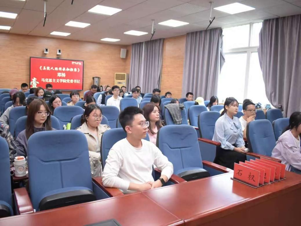党委书记邓杨聚焦“马院人的传承和担当”,带领新生们回顾了学院深厚的红色血脉,介绍了在红色基因浸润下的学院建设步履铿锵,科研成果丰硕,平台资源优质。她寄语学子们:“作为新时代马院人,当赓续红色基因,以学术报国、实践为民,让青春在南湖启航。”