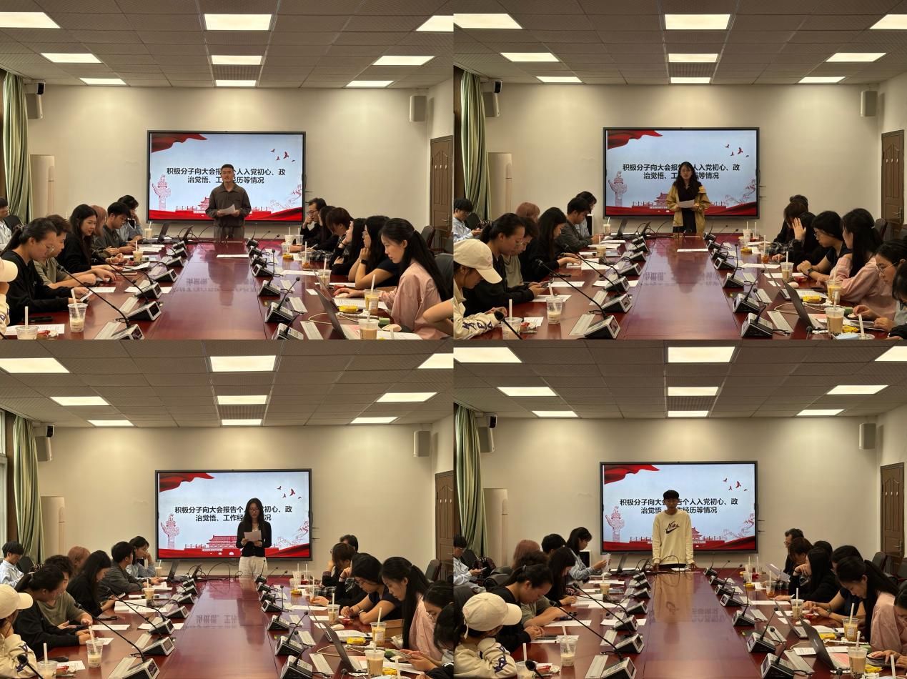 大会第二项,召开“确定发展对象”支部大会。首先,由胡南同志报告出席大会的人数,而后梁犇、田秘、张欣玥、白继坤、梅傲雪、许靖晗、李孟微、王婧琦8名积极分子依次向大会报告入党初心、政治觉悟、个人履历等需要向党组织说明的问题。